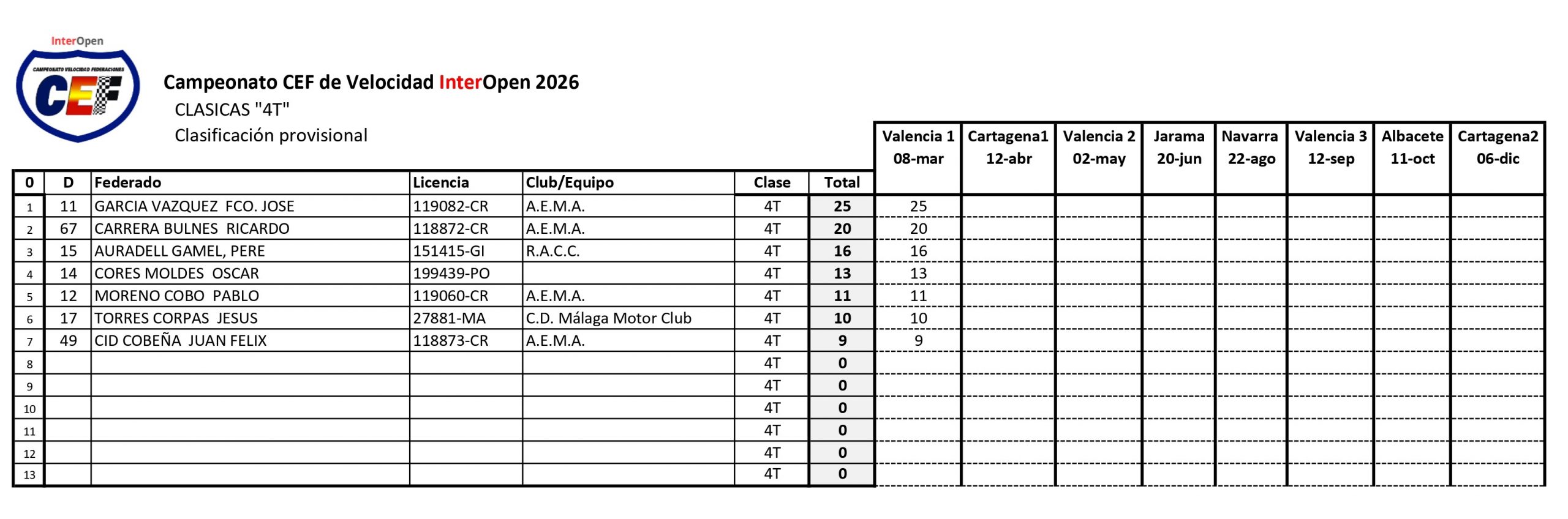 Clásicas 2T: ver y descargar aquí.