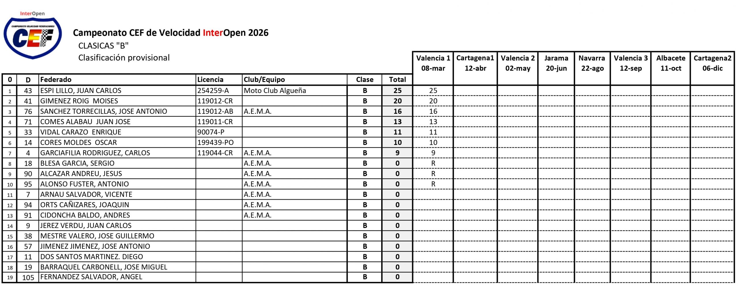 Todas las clasificaciones: ver y descargar aquí.